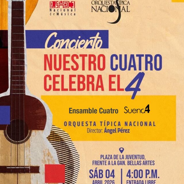 Prensa MPPC (03/04/26).- Este sábado 04 de abril, desde las 4 de la tarde sonará el cuatro venezolano en todo el país con motivo de su celebración anual, y el Ministerio del Poder Popular para la Cultura, a través de la Fundación Compañía Nacional de Música y la Misión Cultura, han preparado un encuentro que rinde homenaje a nuestro instrumento soberano.